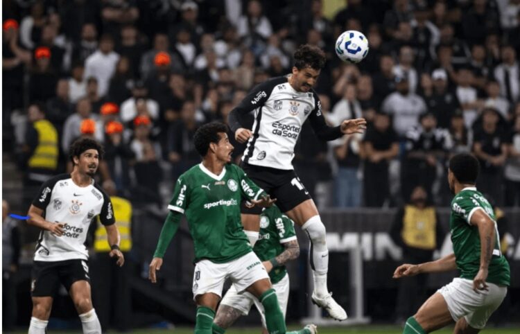 Aos 11 minutos o castigo corintiano, Piquerez fez bom passe na diagonal, Vitor Roque dominou, passou para Flaco López, que sofreu pênalti de Charles, dentro da área. Roque bateu forte e abriu o placar para o Verdão, 1×0.